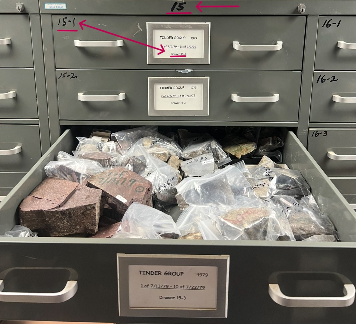 Record the cabinet and drawer numbers where the specimen is physically stored. For example, Cabinet 15 and Drawer 15-1. |