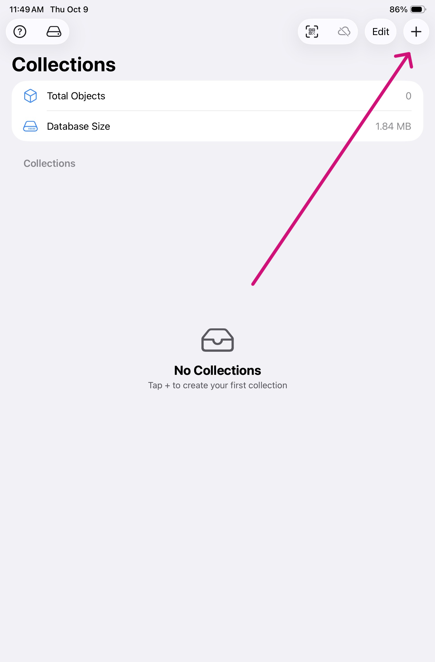 In the Collections portal, click the plus symbol to add a new specimen to the collection. |