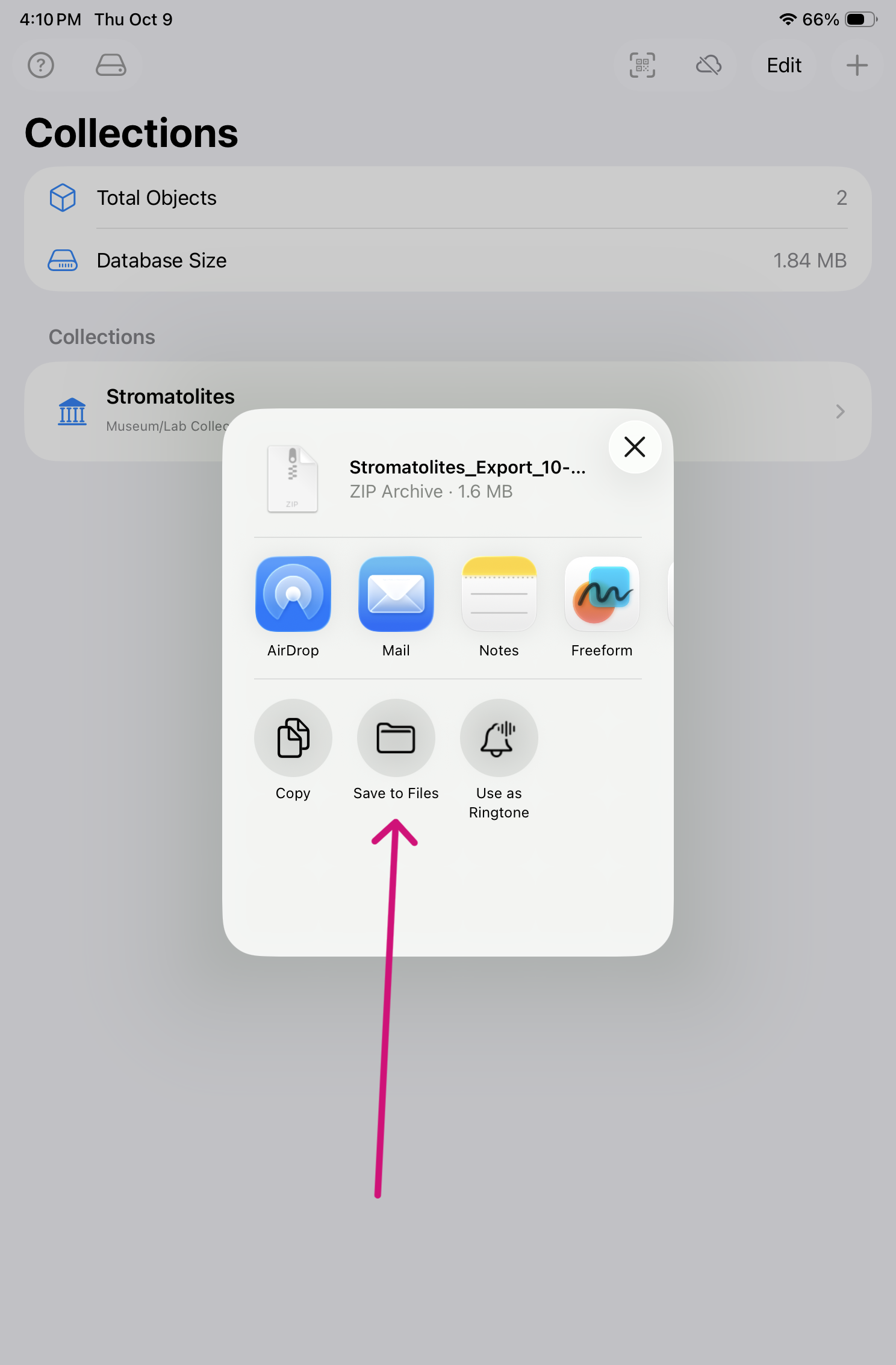 At the end of each week, make sure to export the database to the device so that a copy is saved in the Files app.