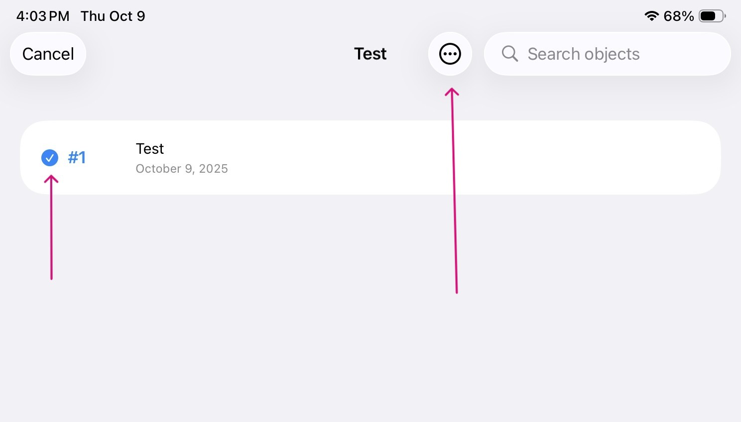 Tap “Add Photo” then “Take Photo”. This is the opportunity to take a top-down photo fo the entire drawer, a photo of the specimen with its tag (object), and an up close image of the specime “detail”. If there is an associated entry in a field notebook and/or a specimen label, use the document option to scan the text. |